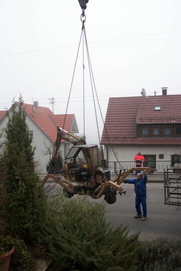 Stufen und Mauern überwinden wir mit Aluminiumschienen oder der Bagger wird mittels